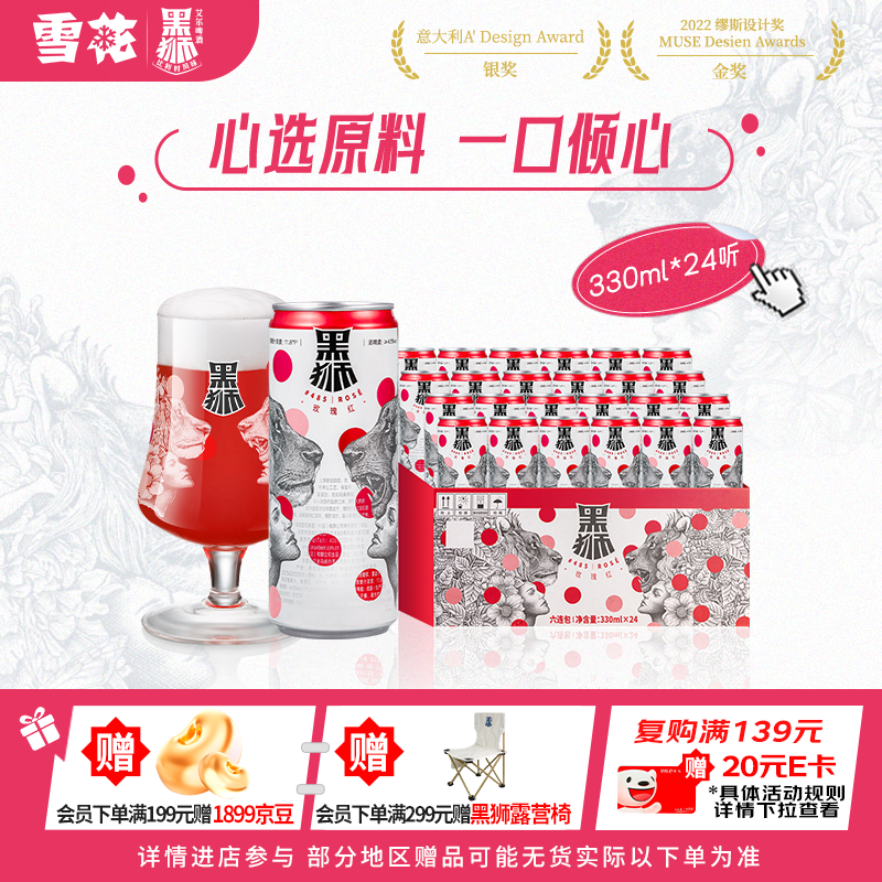 【京东商城】【食品保健】黑狮啤酒【雪花旗下高端品牌】玫瑰红覆盆子果啤 330ml*24听