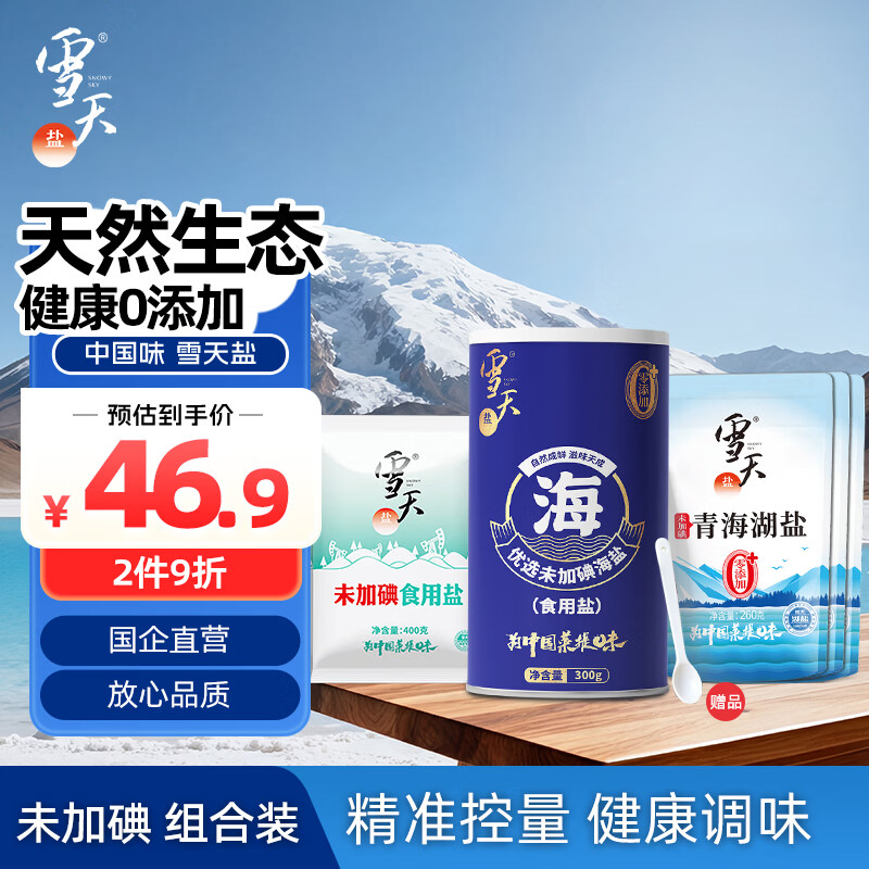 【京东商城】【食品保健】雪天【无碘】食盐套装(湖盐+精制盐+海盐)家用火锅调料送