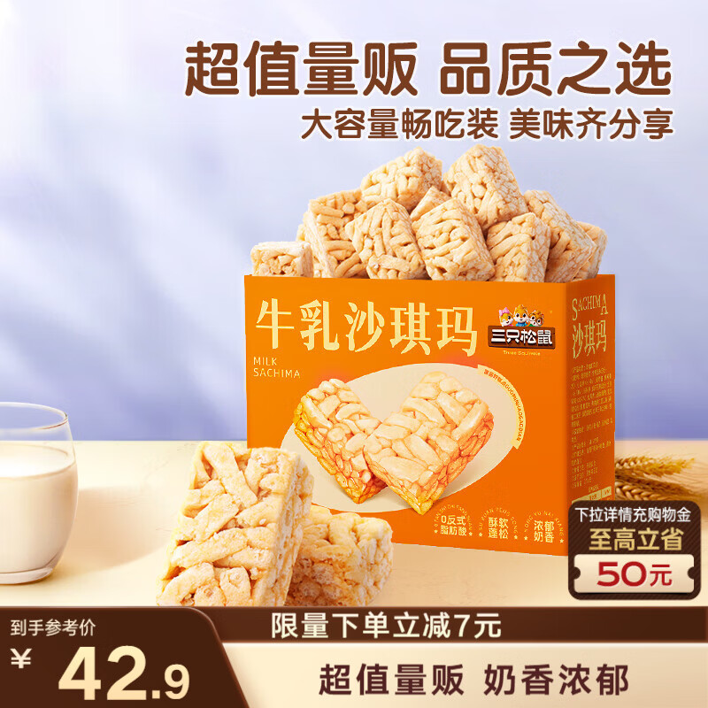 【京东商城】【食品保健】良品铺子牛乳沙琪玛500g无蔗糖萨其马早餐面包糕点代餐0蔗糖