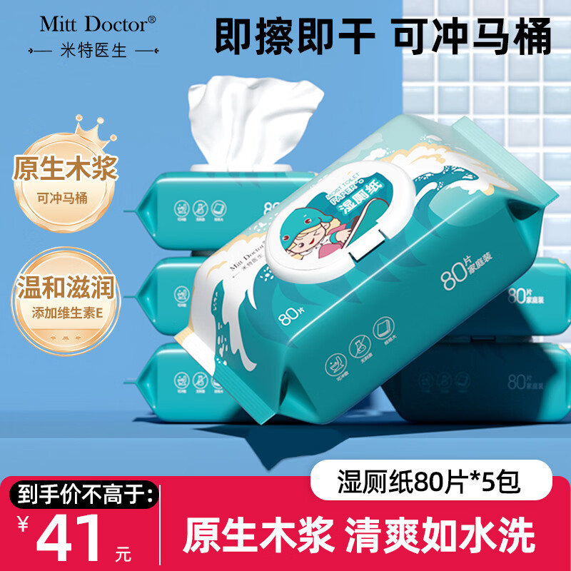 【京东商城】【美容美妆】米特医生湿厕纸冲浪款 80片*5包 添加维E湿纸巾 私处清洁湿巾