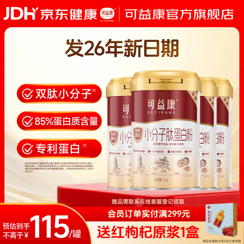 【京东商城】【食品保健】可益康小分子肽蛋白粉350g*4罐大豆肽核桃肽乳清蛋白中老年