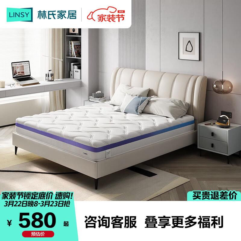 【京东商城】【家居家装】林氏家居卧室泰国进口乳胶床垫23cm厚独立弹簧CD195A床垫,1.5M
