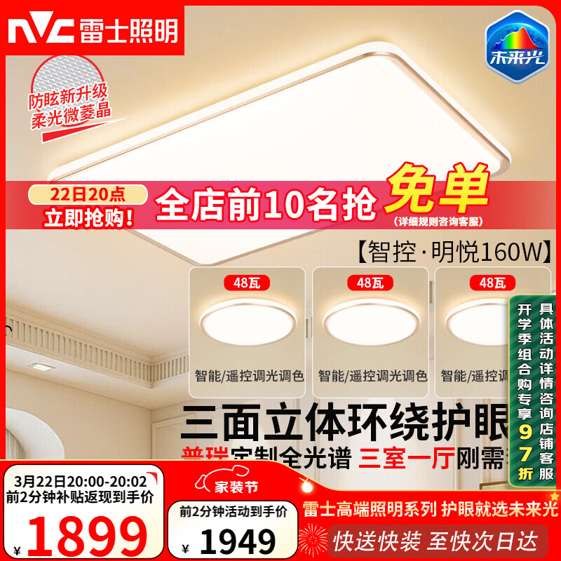 【京东商城】【家居家装】雷士(NVC)吸顶灯客厅大厅大灯led智能高端全光谱健康护眼
