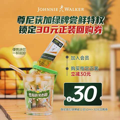 【京东商城】【食品保健】尊尼获加(JOHNNIE WALKER)尊尼获加绿牌15年 调和威士忌 50ml