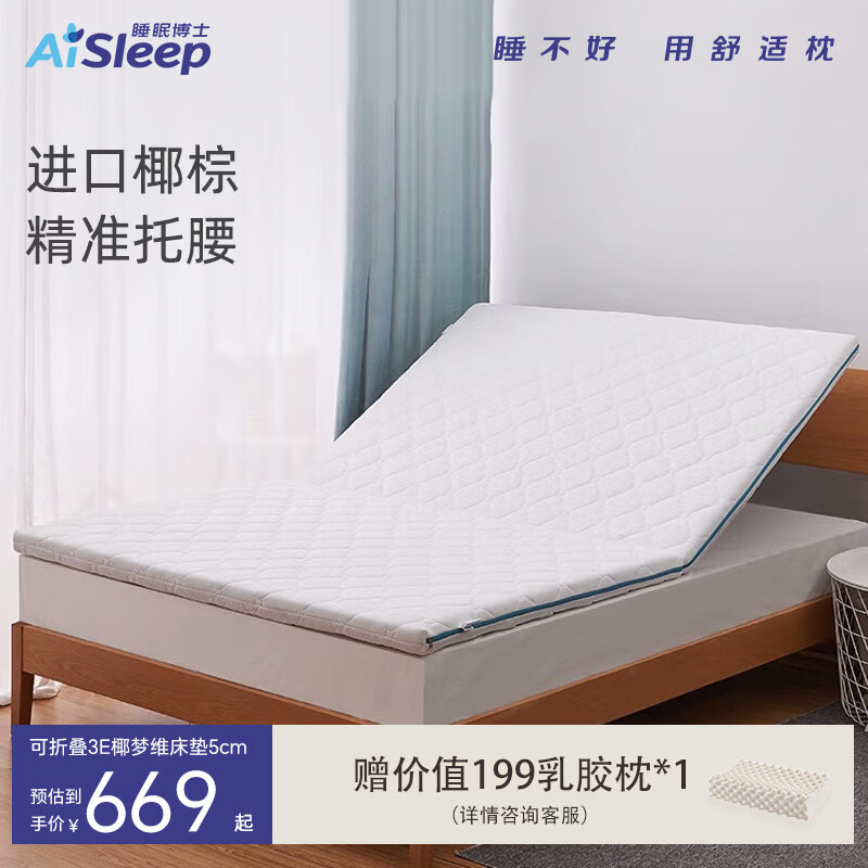 【京东商城】【家居家装】睡眠博士(AiSleep)椰棕床垫 可折叠 可定制尺寸床垫 180*200*5