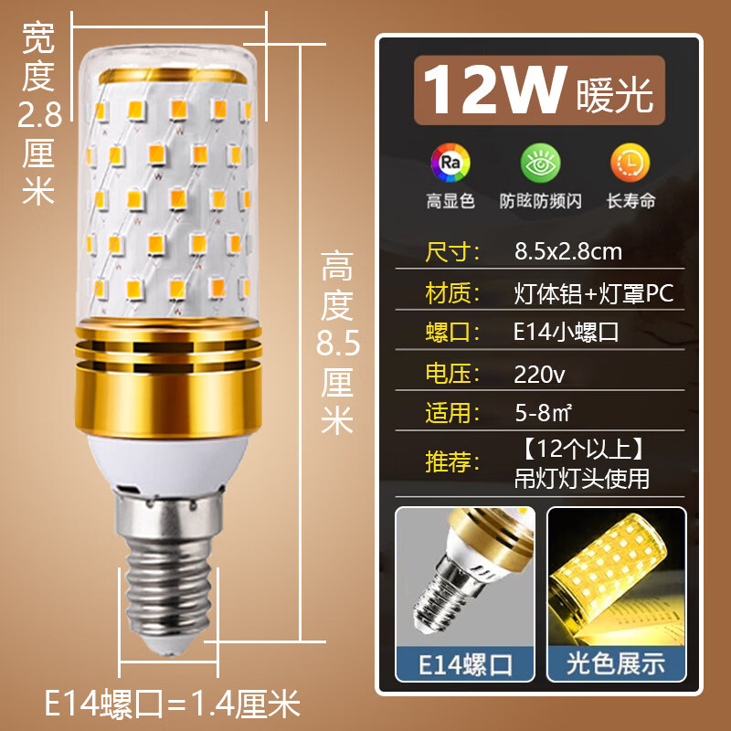 【京东商城】【家居家装】姿灯(ZIDENG)LED玉米灯泡球灯 高亮12W暖光节能灯 可替换光源