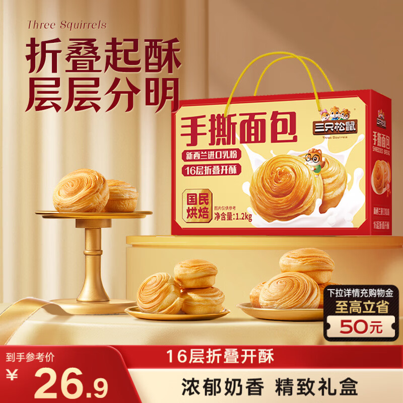 【京东商城】【食品保健】烘焙村早餐面包糕点心休闲零食 金砖手撕面包85g*6袋