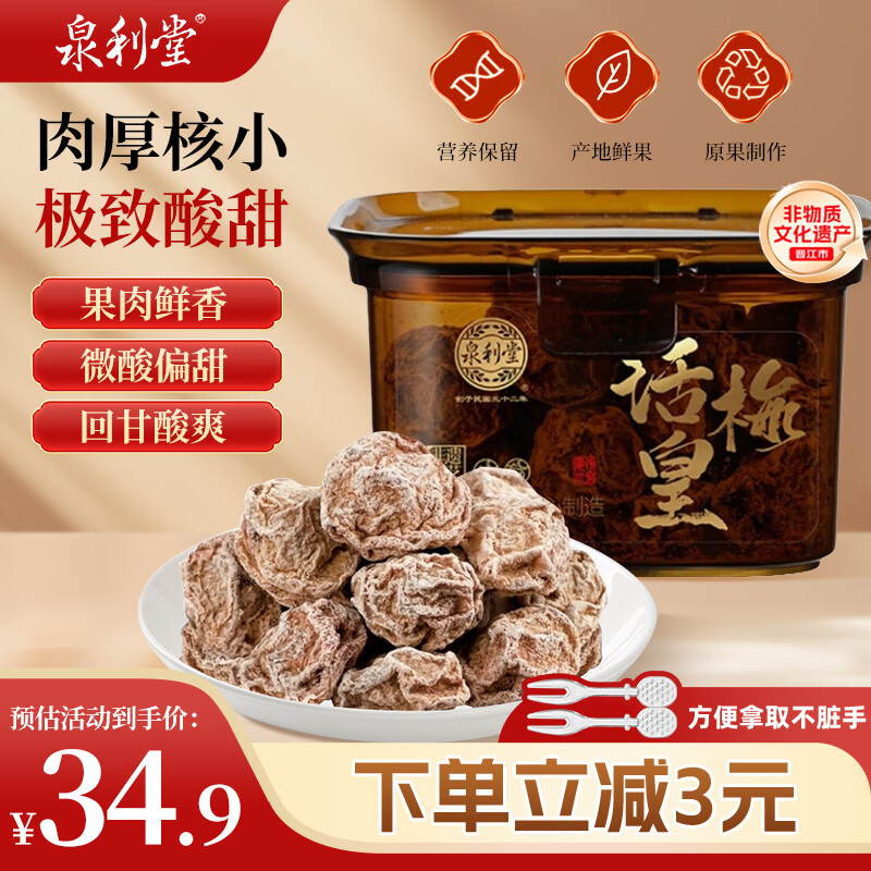 【京东商城】【食品保健】泉利堂话梅皇130g罐 蜜饯水果干果脯西梅话梅办公室休闲小零