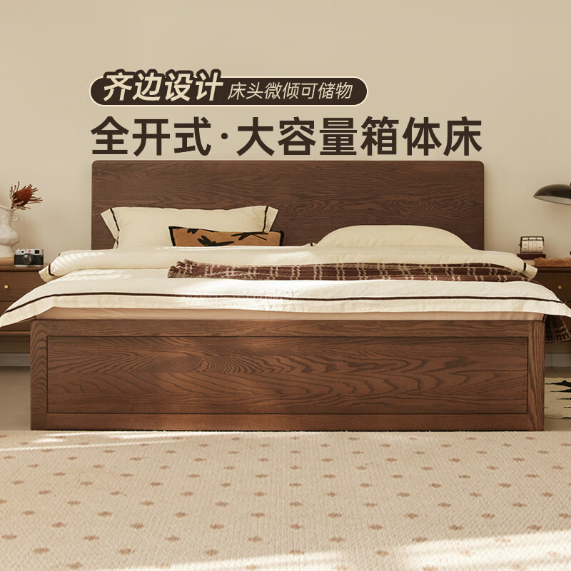 【京东商城】【家居家装】原始原素实木床橡木简约齐边储物床单人低箱体床1.2黑胡桃