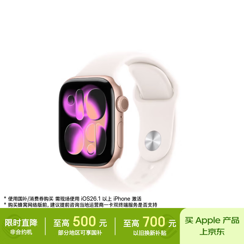 【京东商城】【手机数码】Apple/苹果 Watch S11 智能手表42毫米玫瑰金色铝金属表壳淡桃粉