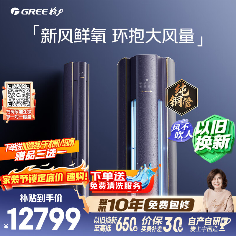 【京东商城】【生活家电】格力空调 云舒氧 3匹 新一级能效变频 纯铜管健康舒适新风不