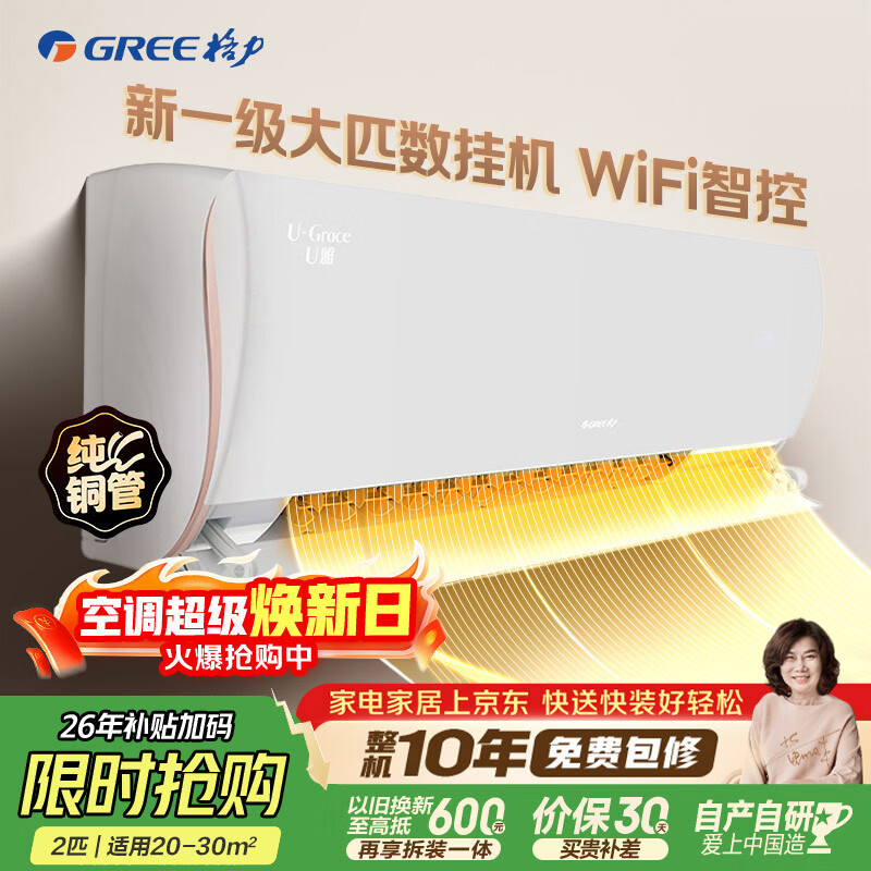 【京东商城】【生活家电】格力空调 U雅2匹 新1级能效 变频自清洁WiFi防直吹 壁挂式空调