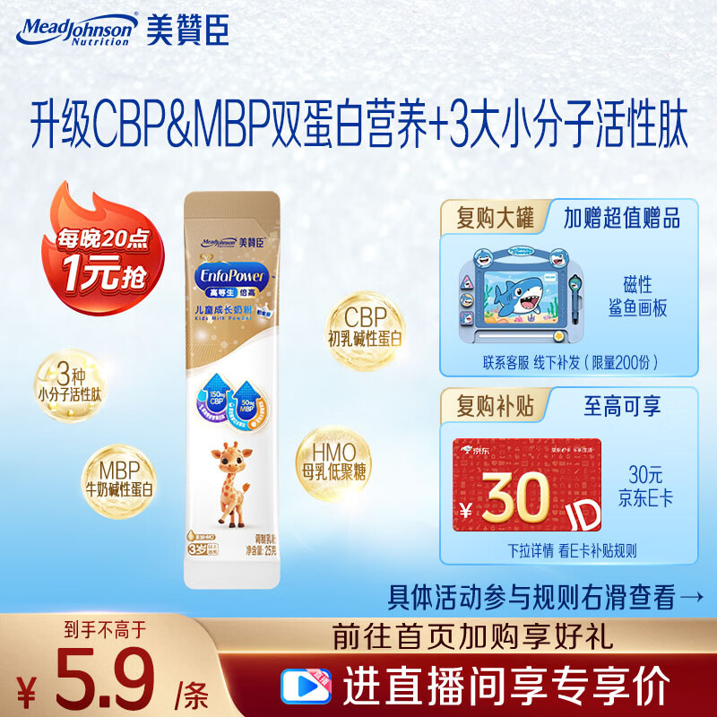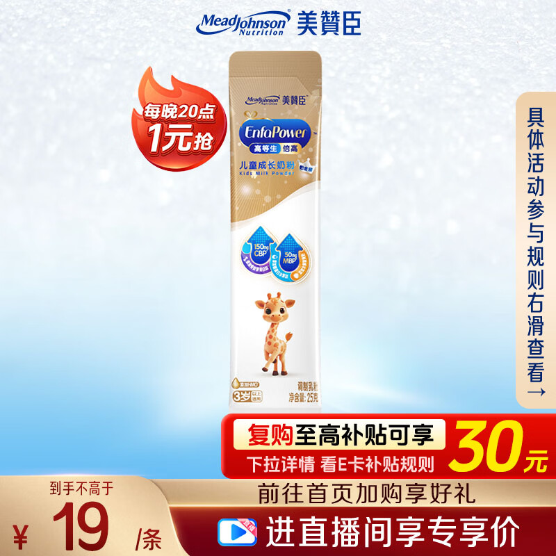 【京东商城】【母婴用品】美赞臣高等生倍高铂金装儿童奶粉3岁以上25g*1条 CBP+MBP