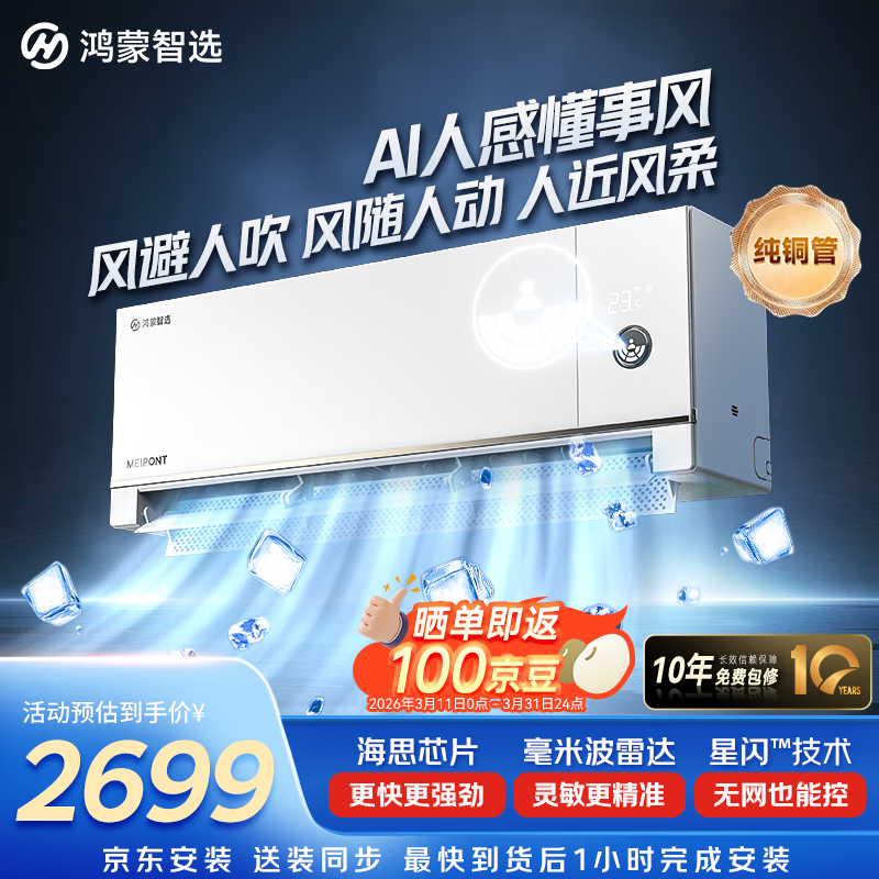 【京东商城】【生活家电】鸿蒙智选MEIPONT空调挂机大1.5匹 风神之眼S AI懂事风 新一级能