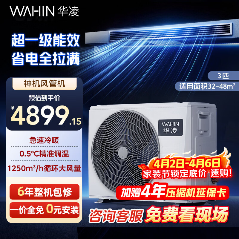 【京东商城】【生活家电】华凌中央空调美的出品风管机一拖一大3匹一级能效变频空调