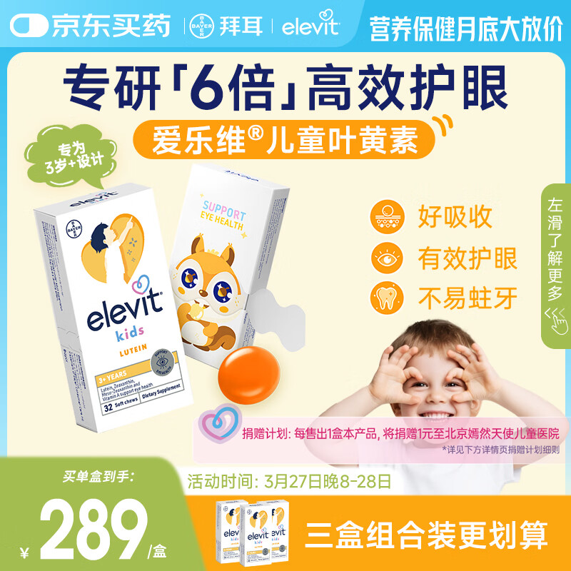 【京东商城】【食品保健】Elevit爱乐维叶黄素儿童护眼酪3-12岁保护视力非叶黄素软糖一