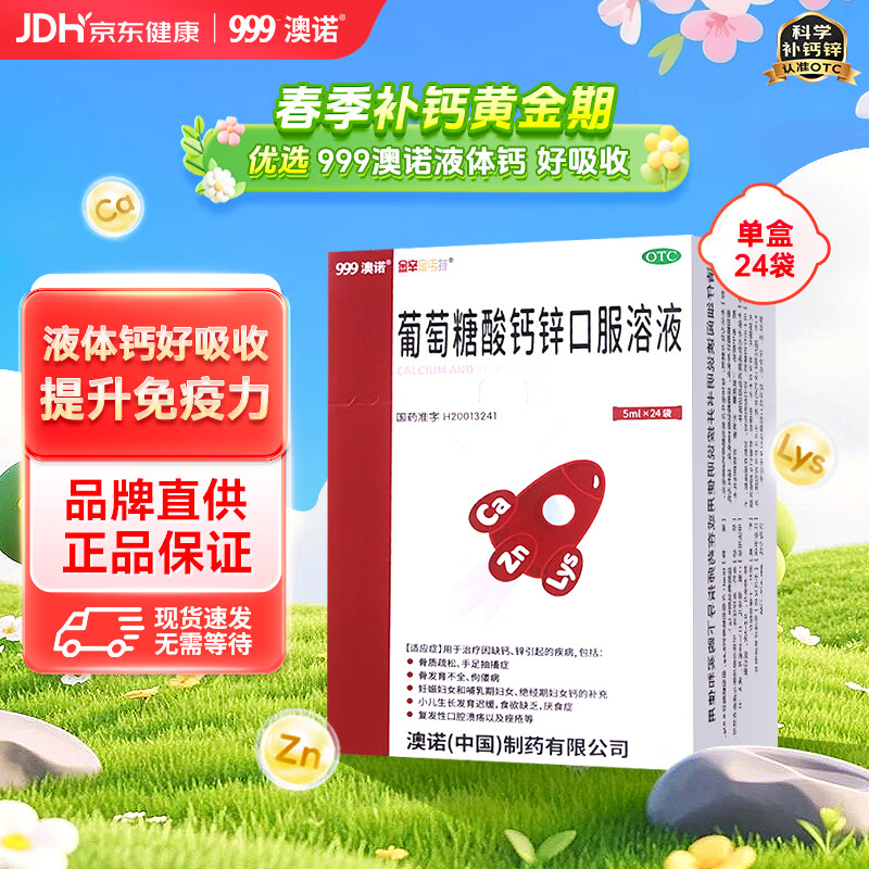 【京东商城】【食品保健】澳诺 葡萄糖酸钙锌口服溶液 5ml*24袋 葡萄糖酸锌 钙 液体钙