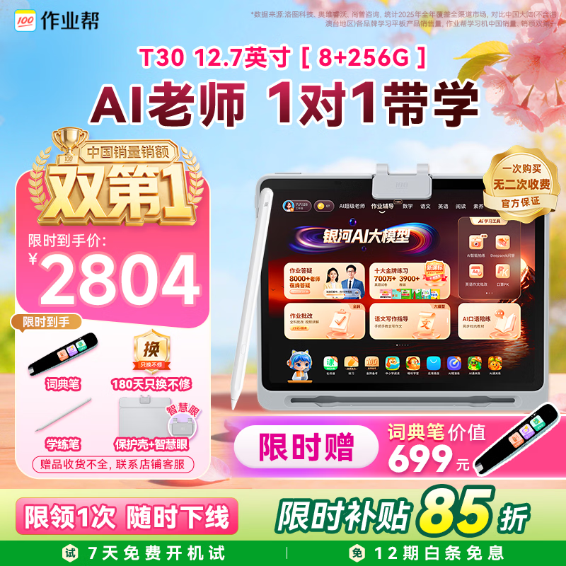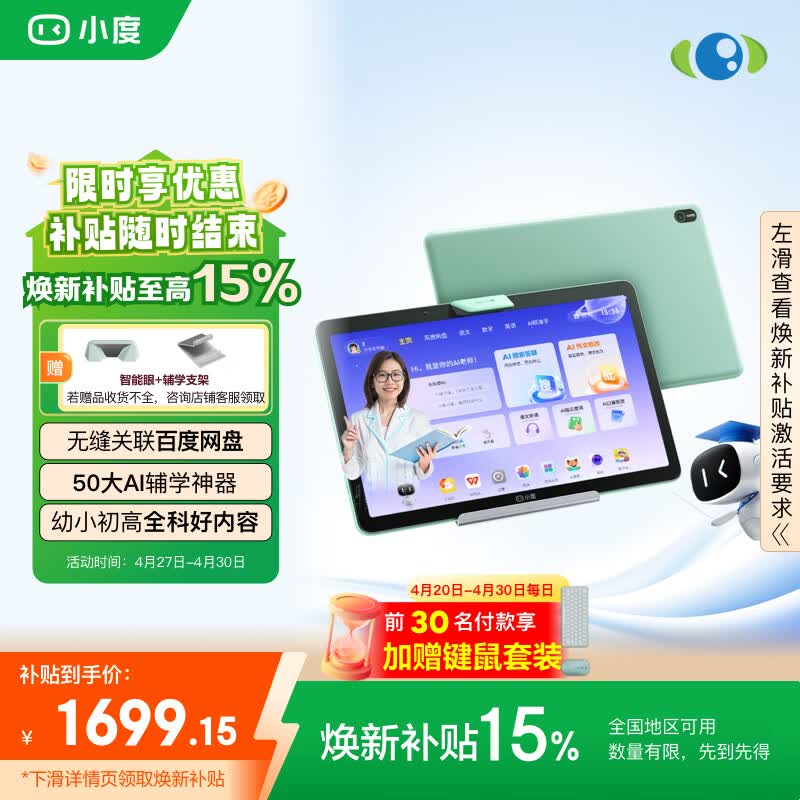 【京东商城】【手机数码】小度光学护眼学习平板Z20 Pro (6+128G)小学到高中学生学习机 五