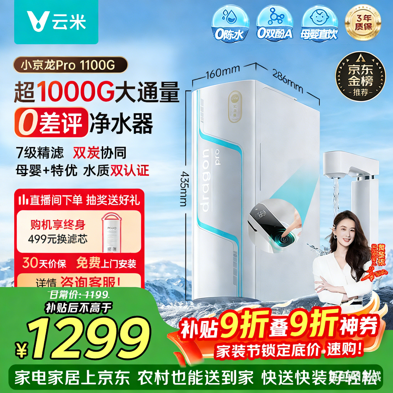 【京东商城】【生活家电】云米(VIOMI)厨下净水器小京龙PRO1100G RO反渗透 母婴直饮自来