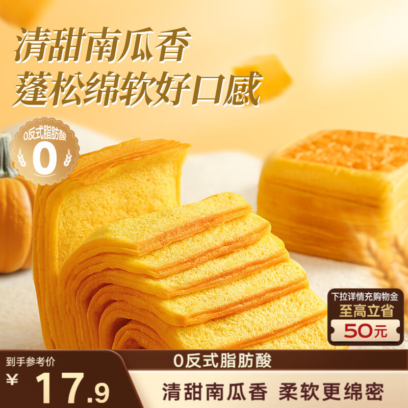【京东商城】【食品保健】三只松鼠南瓜千层吐司700g 营养早餐吐司面包蛋糕办公室抵饱