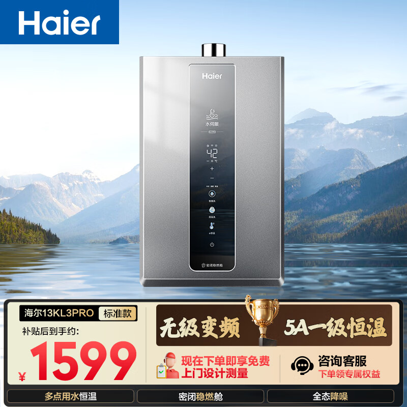 【京东商城】【生活家电】海尔【K系列KL3PRO】13升 顶配水伺服恒温 下置风机 节能速热