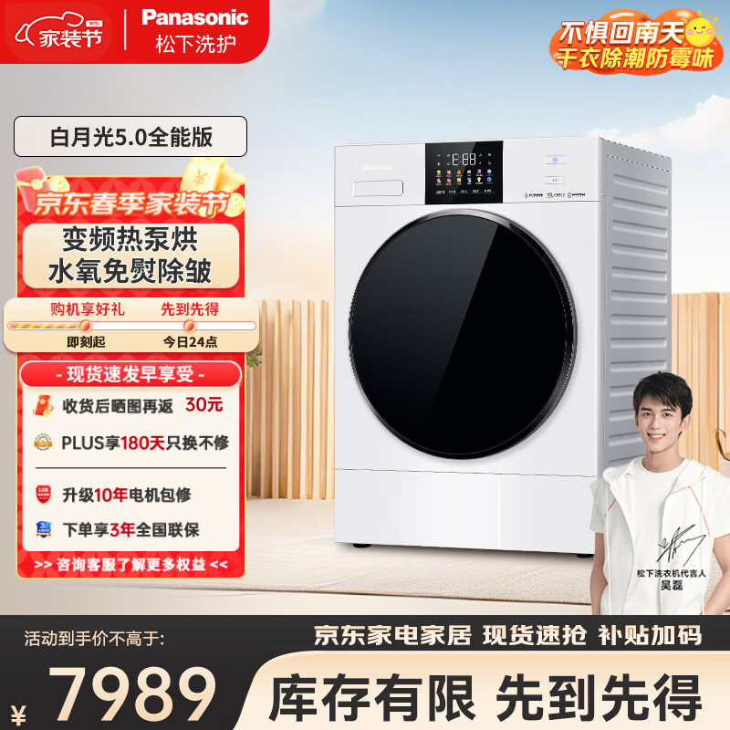 【京东商城】【生活家电】松下(Panasonic)白月光5.0全能热泵烘干机10KG 家用变频干衣机
