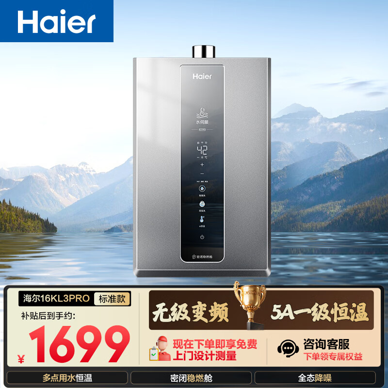 【京东商城】【生活家电】海尔【K系列KL3PRO】16升 顶配水伺服恒温 下置风机 节能速热