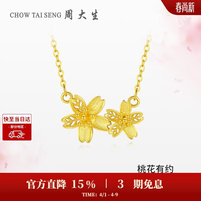 【京东商城】【礼品箱包】周大生黄金项链足金桃花套链镂空设计时尚繁花生日礼物送