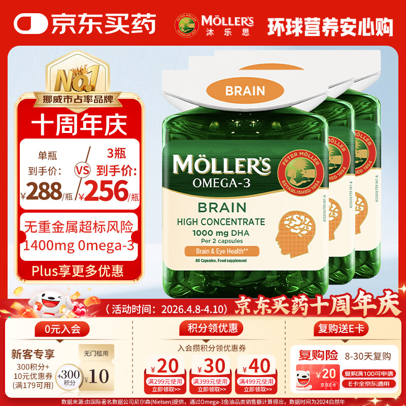 【京东商城】【食品保健】Mollers【挪威百年品牌】青少年护脑护眼深海鱼油胶囊80粒/瓶