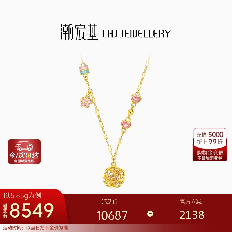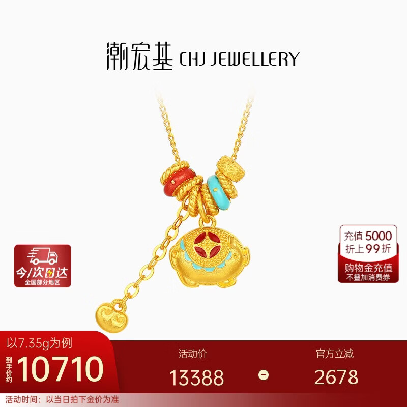 【京东商城】【礼品箱包】潮宏基传家宝猪足金古法黄金项链女套链鎏彩跑马环生日礼