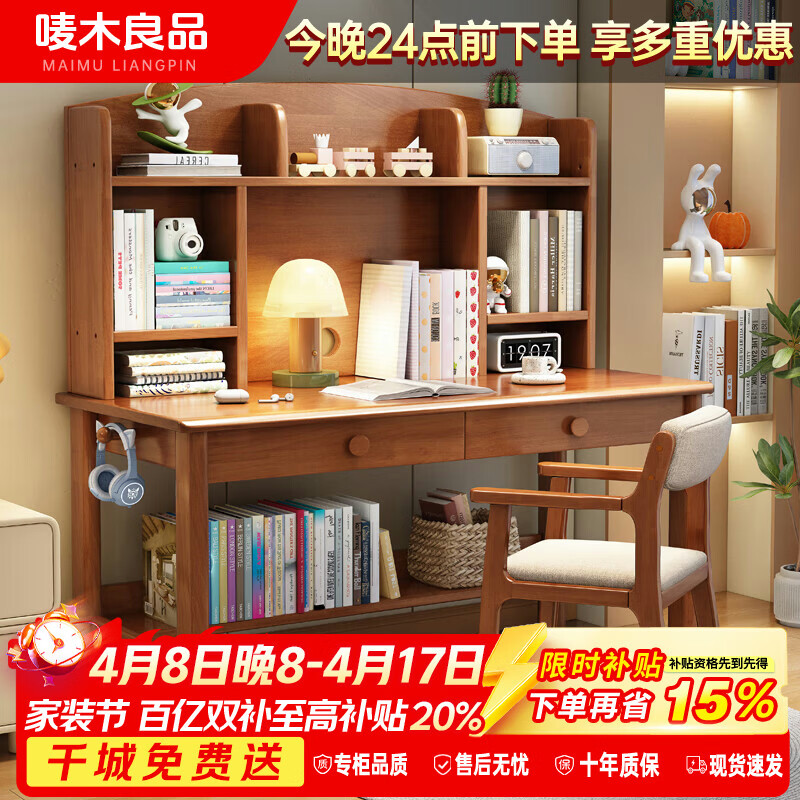 【京东商城】【家居家装】唛木良品实木书桌学习电脑桌全实木书桌书架一体桌子X2020胡