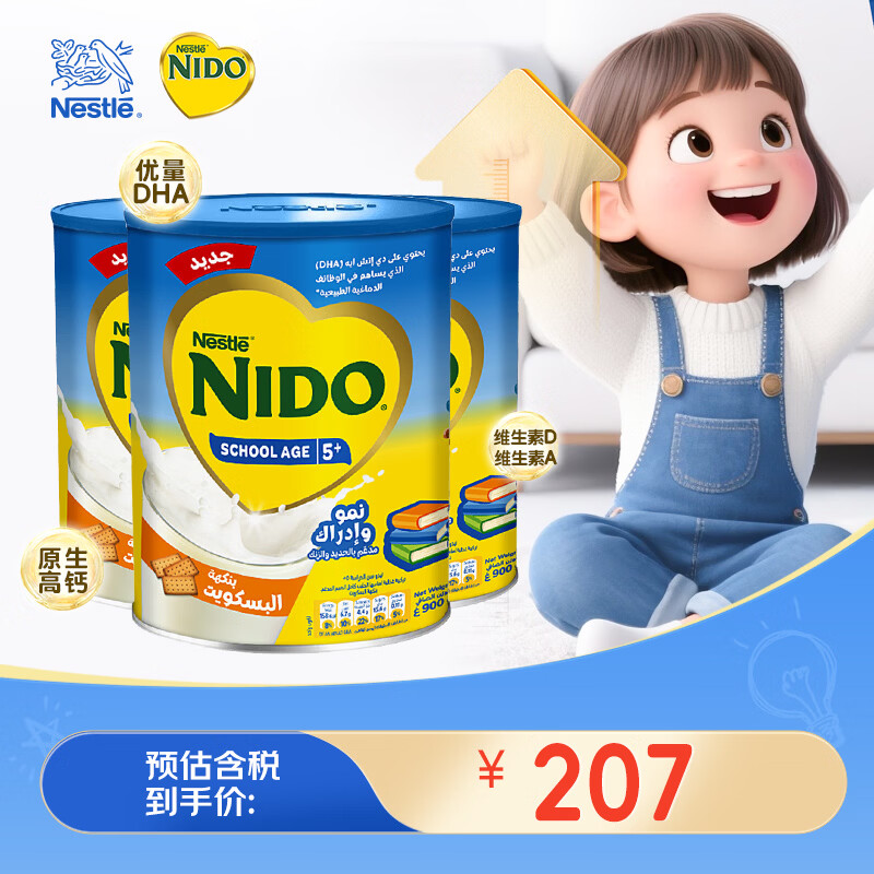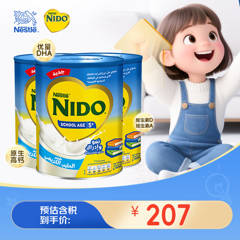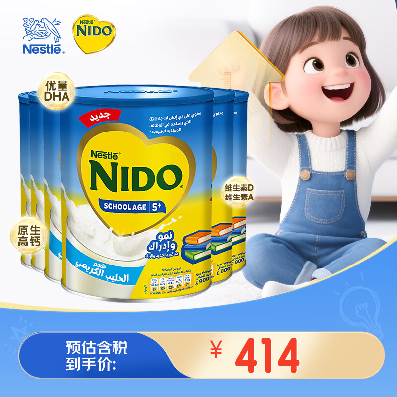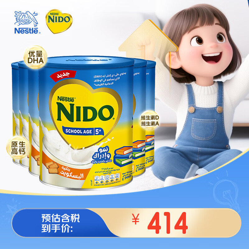 【京东商城】【母婴用品】雀巢NIDO5+儿童奶粉脑力加油站高钙锌维生素D奶粉900g/罐*6奶油