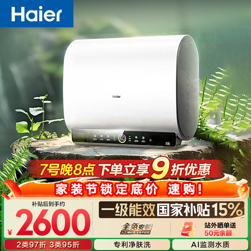 【京东商城】【生活家电】海尔(Haier)80升电热水器3300W变频新3D智慧洗专利净水洗内胆