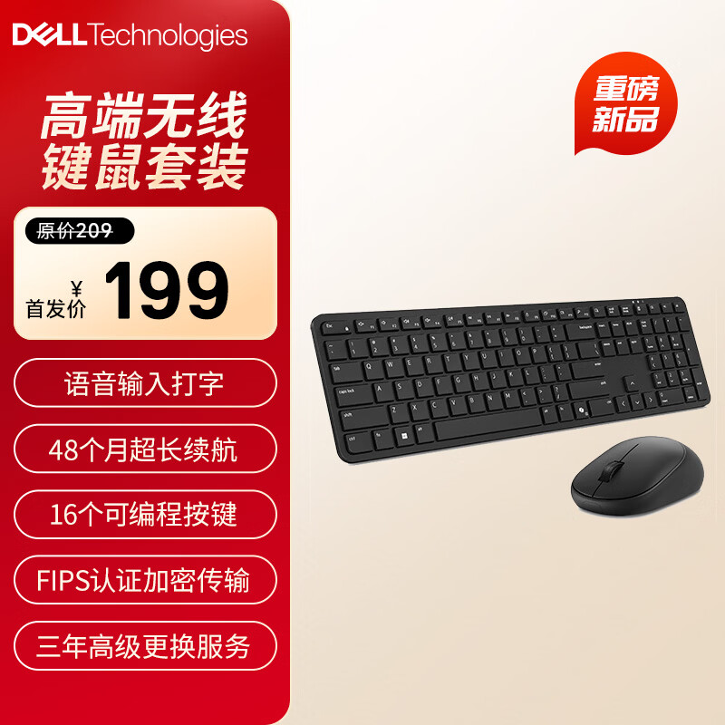 【京东商城】【电脑办公】戴尔(DELL)无线键鼠套装 高端商务办公全尺寸键盘鼠标外设