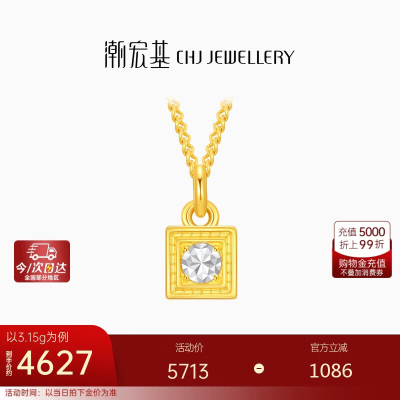 【京东商城】【礼品箱包】潮宏基小方糖足金黄金项链女坠链金钻工艺送女友生日礼物