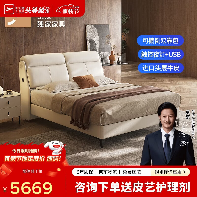 【京东商城】【家居家装】芝华仕(CHEERS)[QC]五星皮床现代简约主卧室高脚双人婚床软