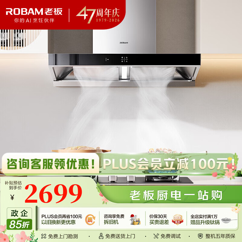 【京东商城】【生活家电】老板双子星65X3S油烟机变频双腔25风量1000Pa静压大吸力抽油烟