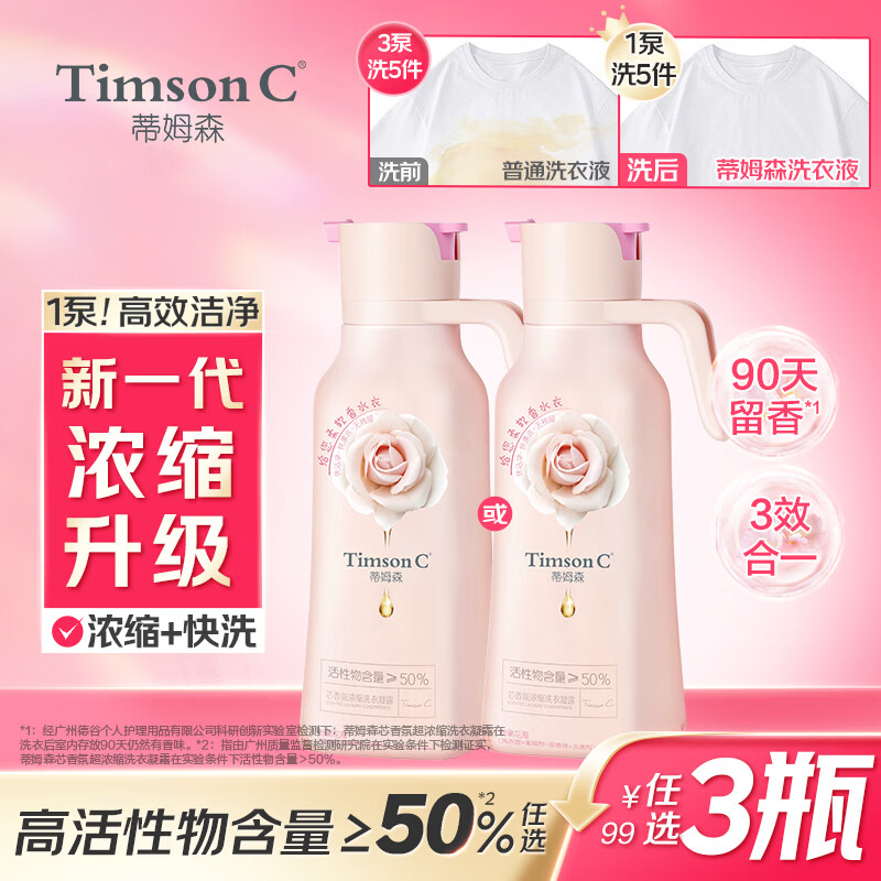 【京东商城】【母婴用品】阿道夫.蒂姆森快洗洗衣液超浓缩泵洗持久香味粉黛花海618ml