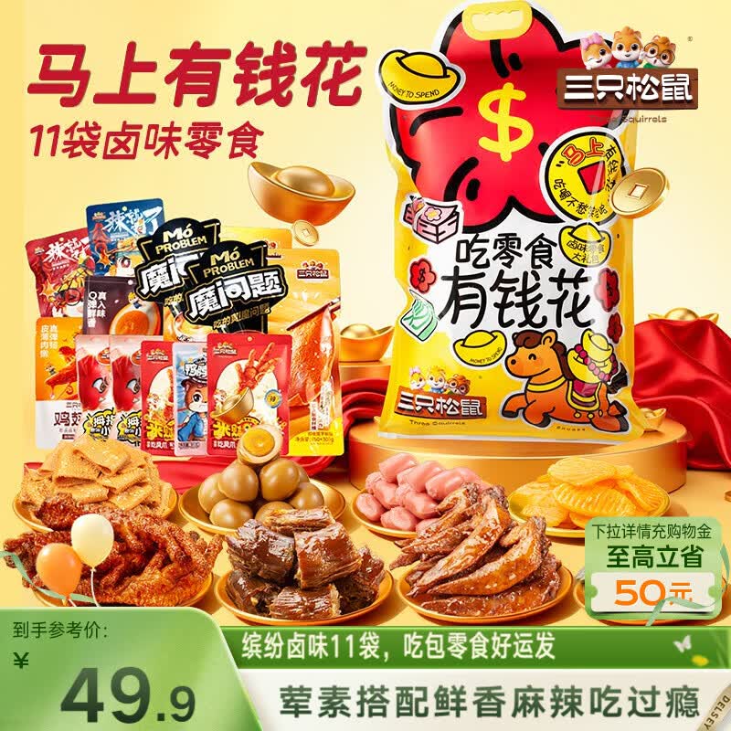 【京东商城】【食品保健】三只松鼠马上有钱花肉食礼包816g/11袋辣卤鸡爪鸭脖肉干肉脯