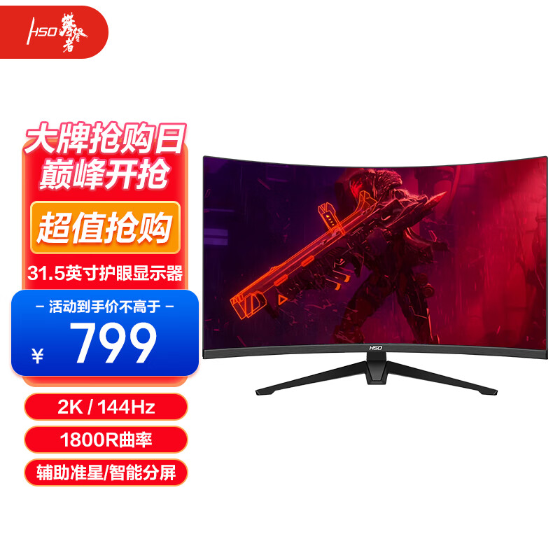 【京东商城】【电脑办公】HSO 31.5英寸 2K高清144Hz电竞游戏 1800R曲面 可壁挂 HDMI/DP接口 办