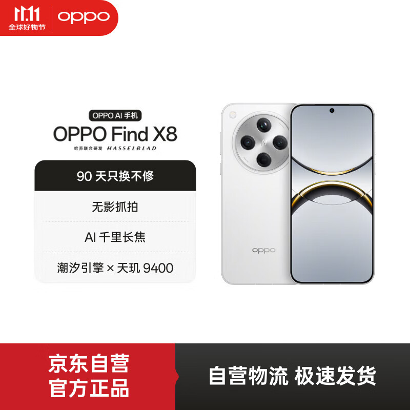 【京东商城】【手机数码】OPPO Find X8 12GB+256GB 浮光白 无影抓拍 超轻薄直屏 天玑9400 AI一