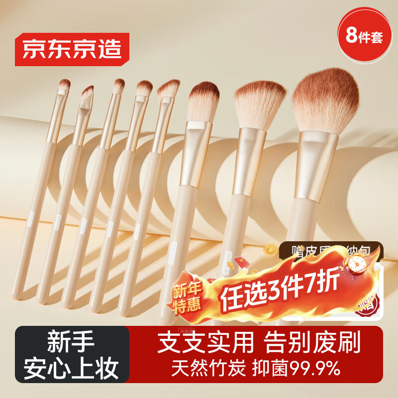 【京东商城】【美容美妆】京东京造 化妆刷全套12支 散粉修容眼影腮红遮瑕 送收纳桶