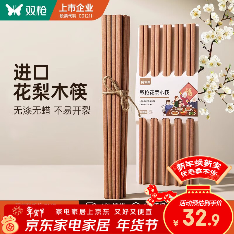 双枪非洲进口高档花梨木筷2024新款家用木筷子无漆无蜡原木筷实木筷 【活动款】花梨木筷10双装