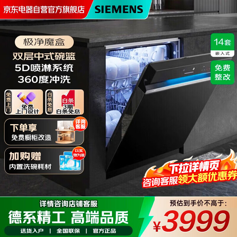 【京东商城】【生活家电】西门子【极净魔盒】14套洗碗机嵌入式家用全自动消毒碗柜除