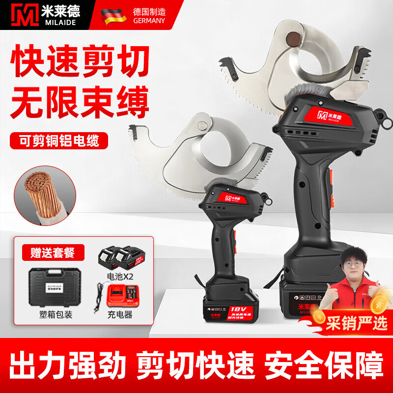 【京东商城】【汽车工业】米莱德电动电缆剪刀剪线钳断线钳齿轮剪棘轮剪刀铠装电缆