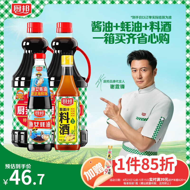 【京东商城】【食品保健】厨邦酱油 经典系列 生抽酱油1.5kg*2+蚝油490g+料酒500ml 调料套