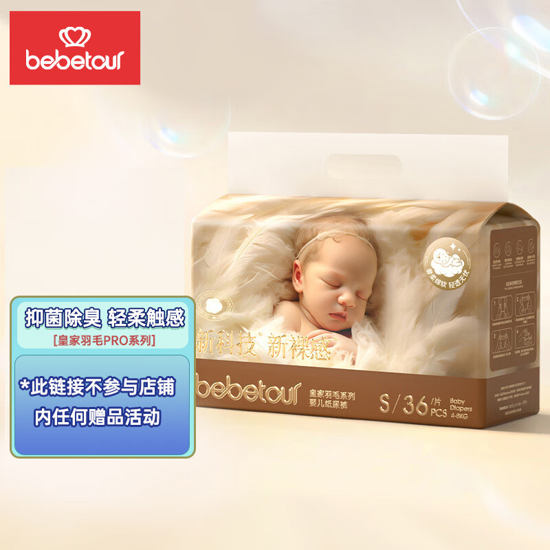 bebetour皇家羽毛纸尿裤S码36片(4-8kg)超薄干爽泡泡腰围