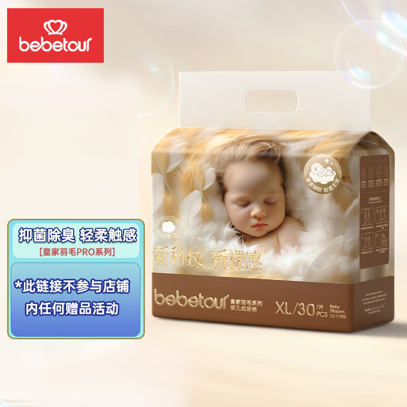 bebetour 皇家羽毛系列纸尿裤 XL码30片婴儿超薄干爽透气泡泡腰围尿不湿