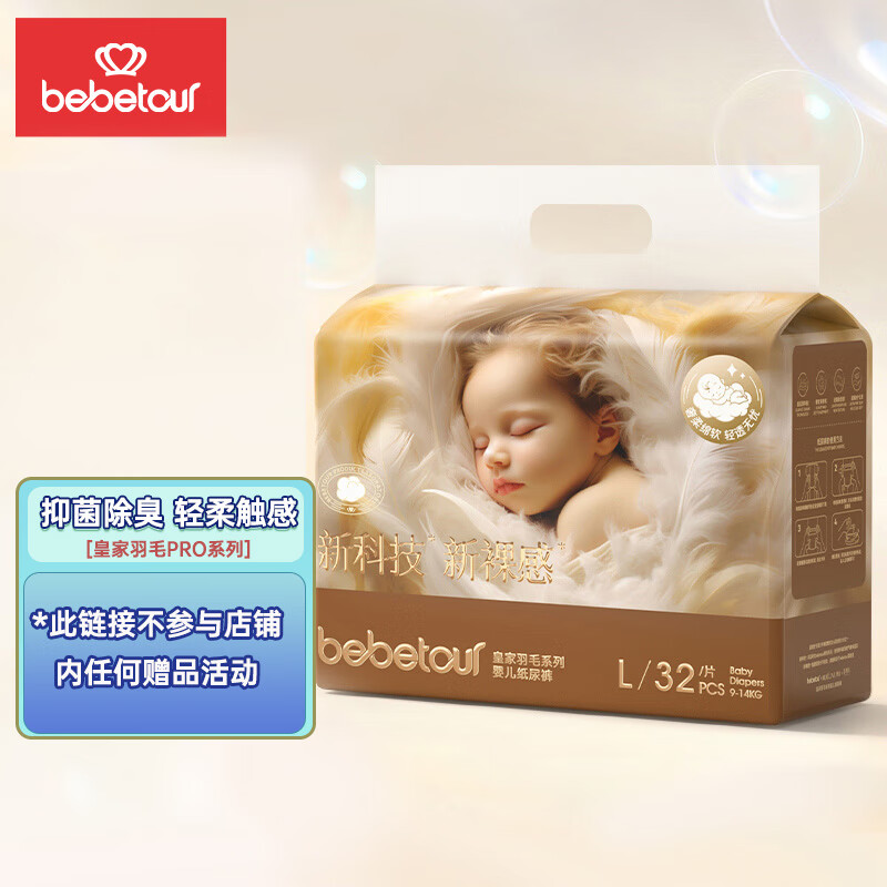 bebetour 皇家羽毛系列纸尿裤 L码32片超薄干爽透气泡泡腰围尿不湿