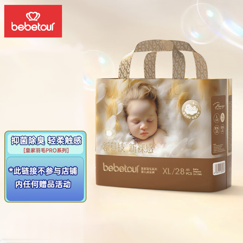 bebetour皇家羽毛系列拉拉裤XL28片超薄干爽透气尿不湿泡泡腰围成长裤